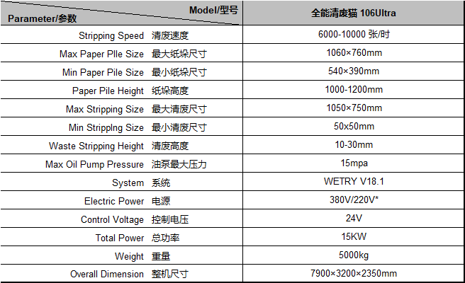 1、采用獨(dú)創(chuàng)的發(fā)明專利技術(shù)(2024115145971),具有強(qiáng)大的免模具整版全清功能,實(shí)現(xiàn)自動上紙、自動對齊、自動清廢的連貫作業(yè),清廢后產(chǎn)品自動碼垛歸位,廢料同步自動移除,大幅減少人工干預(yù)環(huán)節(jié)。